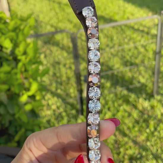 Shown in brown. Available in both brown/black and full/cob sizes. Handmade in USA with European components. Snap closures.